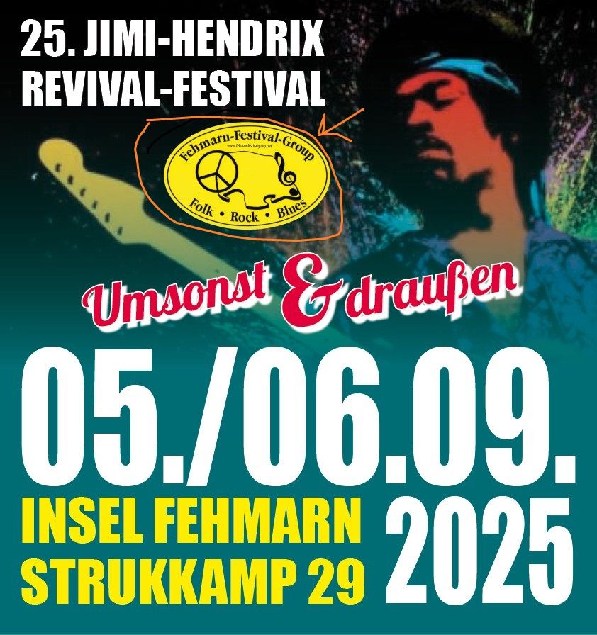 Im Jahre 1997 gelang der FFG nach intensiven Gesprächen mit Behörden die Rückkehr des Austragungsorts des Fehmarn Open Air an den historischen Festivalort Flügge. Dort fand das Jimi-Hendrix-Revival-Festival jährlich bis 2010 statt und zog zwischen 1.500 und 15.000 Besucherinnen und Besucher an. Auf meine Frage hin, welche Musiker damals aufgetreten sind, erklärte Dirk: “Wir haben teilweise Musiker von 1970 wieder engagiert, zum Beispiel ‚Embryo‘ und ‚Inga Rumpf‘“. Er setzte fort: „Das Fehmarn Open Air spornt einige Bands an, von sich aus gewisse Songs, wie ‚All Along the Watchtower‘ zu spielen.“