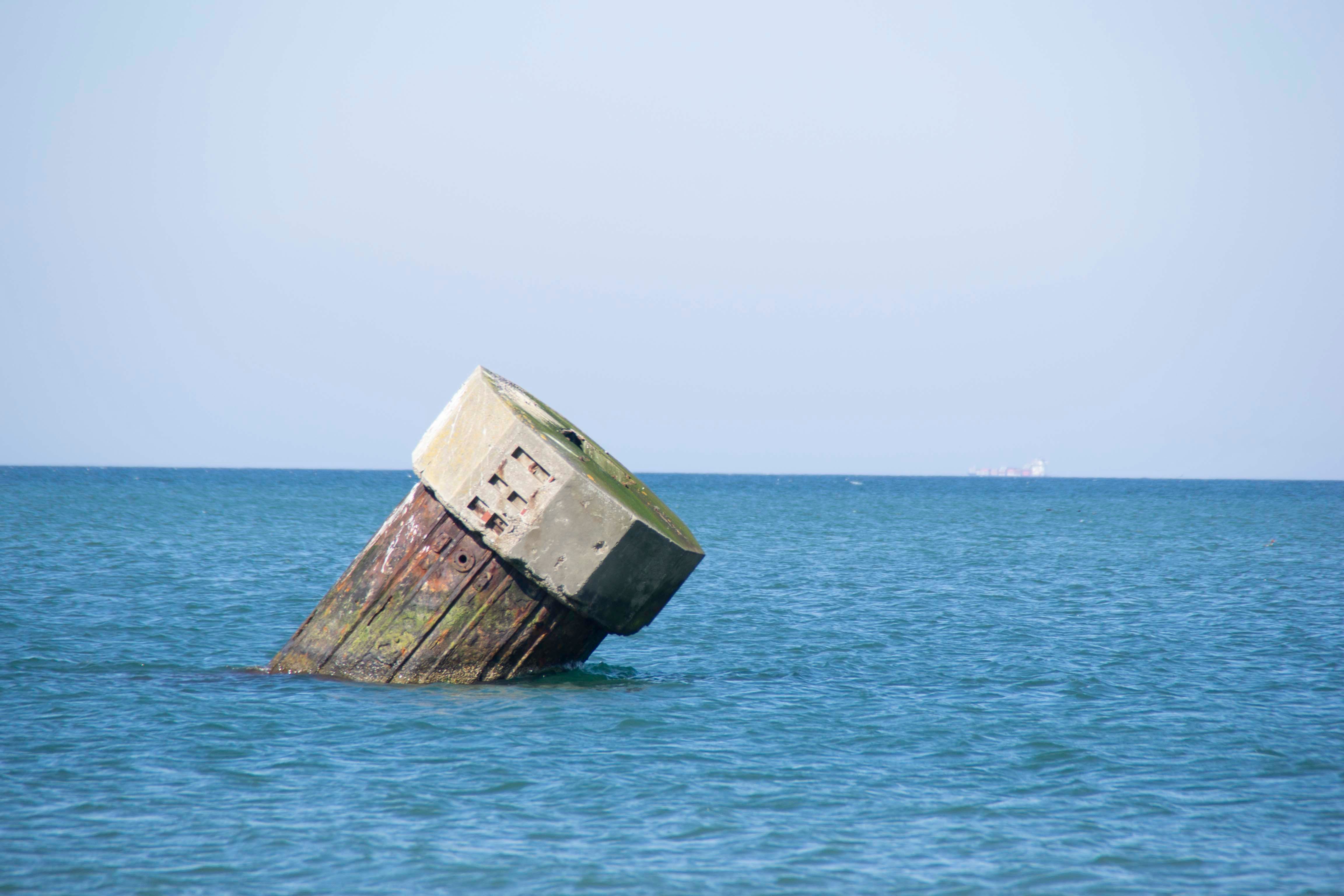 Wer in Westermarkelsdorf den Strand aufsucht, sieht den markanten, ja… was ist das eigentlich für ein Teil? Spundwände, im Kreis angeordnet mit einem Betonkranz oben rum, außerdem total schief.