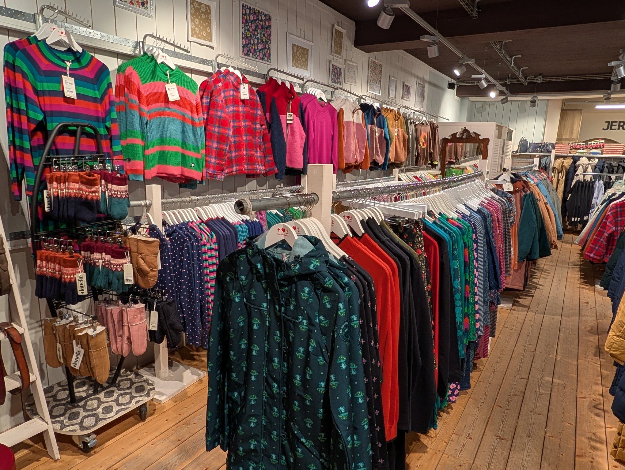 Wenn wir schon beim Thema „Besonderes“ sind, müssen wir über Mode sprechen. Dafür gehe ich zu Jeronimo. Jeronimo ist anders. Hier geht es um Lässigkeit, aber mit Qualität. Wenn ihr vor dem Geschäft steht, dann geht man links hinein und findet eine bunte skandinavische Modewelt. Gerade jetzt im Winter tun die frischen Farben richtig gut. Ob ihr nun auf der Suche nach dem perfekten Paar Stiefel für den Winterspaziergang seid oder ein Outfit für das Abendessen sucht – bei Jeronimo werdet ihr fündig.