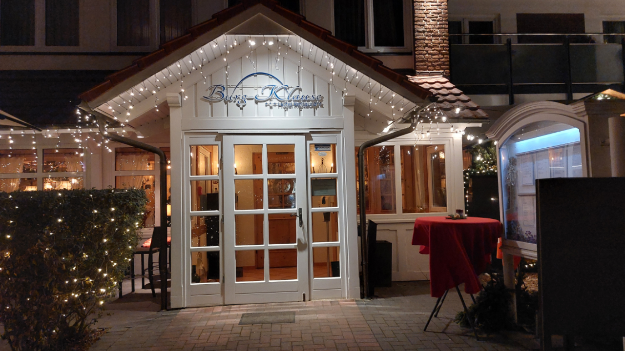 Seid ihr eher auf der Suche nach Wellness und diesem tiefen, wohligen „Hütten-Gefühl“? Dann ab in die Burg-Klause. Das Hotel liegt nur ein paar Gehminuten vom Zentrum entfernt im Blieschendorfer Weg, wirkt aber wie eine kleine Welt für sich. Schon beim Betreten der Lobby merkt man: Hier wird Gastfreundschaft großgeschrieben. Es ist familiär, es ist warm, es duftet oft leicht nach Kaminfeuer oder gutem Essen. Gerade jetzt zur Weihnachtszeit ist alles schön beleuchtet und es gibt sogar einen Punschstand vor der Tür. Das Restaurant ist bekannt für seine fantastische Küche mit bayerischen Akzenten. Ja, richtig gehört! Ein deftiges Essen hier wärmt von innen, und die rustikale Einrichtung mit viel Holz macht es unglaublich gemütlich.