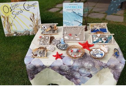 "Maritime Ostsee-Sandcollagen zum Selbstgestalten" Jakobsmuscheln, Austern, Herzmuscheln dekorieren, Perlmuttmuscheln schleifen. für Kinder ab 3 Jahren bis +/- 99 Jahre